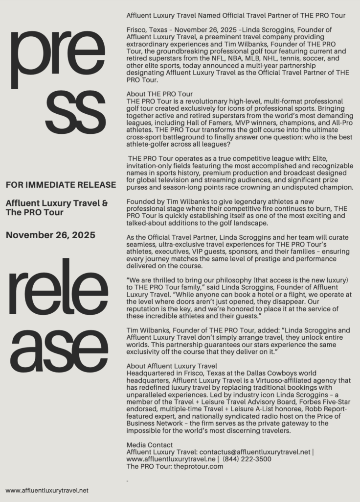Affluent Luxury Travel Named Official Travel Partner of THE PRO Tour