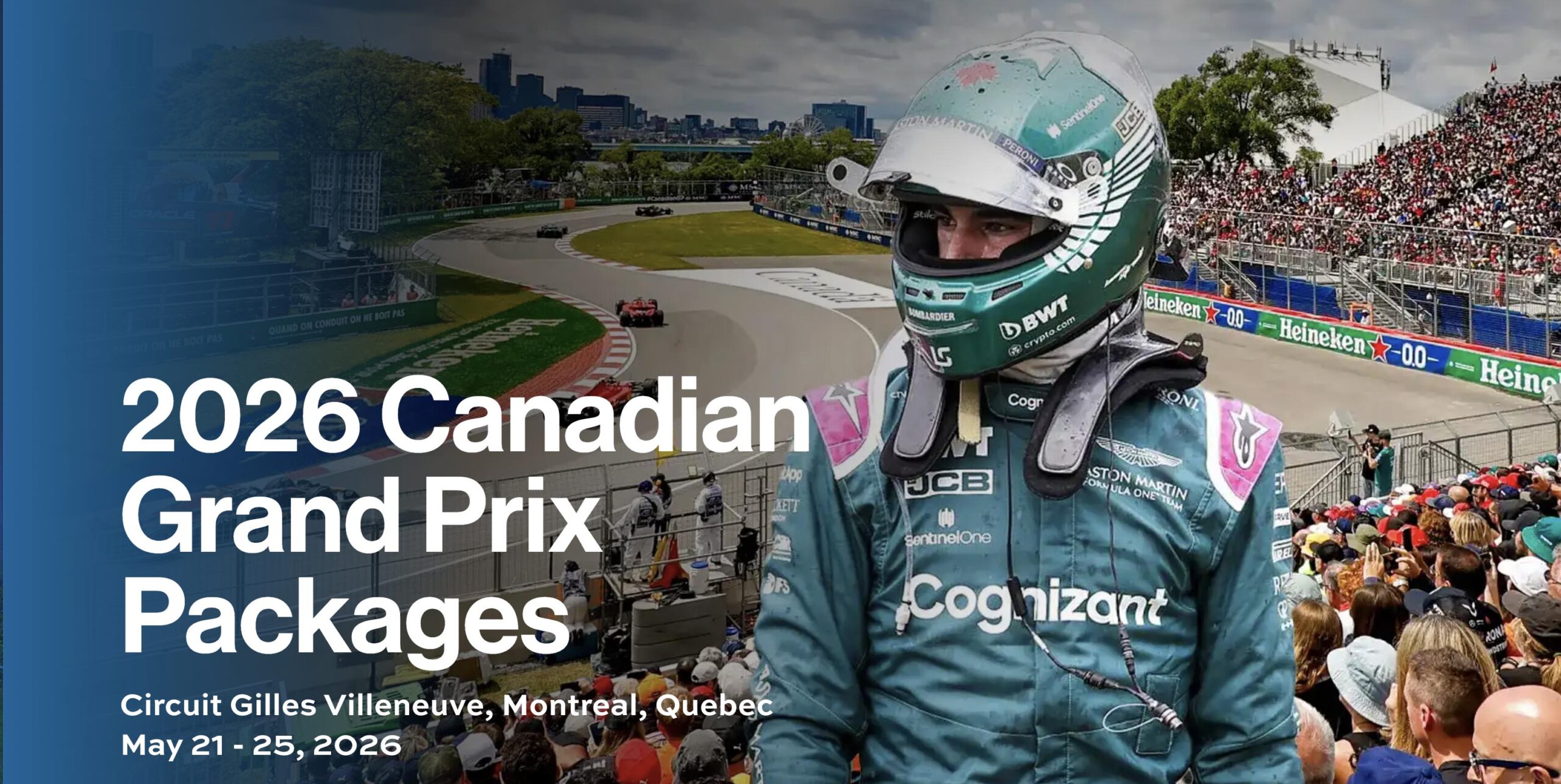 The enduring Canadian Grand Prix is an event every F1 fan should have the pleasure of experiencing. Allow our team to tailor a signature itinerary that perfectly aligns with your preferences. Our 2026 Canadian Grand Prix travel packages include your preferred race viewing (premium grandstand or a fully catered exclusive hospitality venue), coveted accommodations in the heart of Montreal, private airport transfers and more. You can further personalize your experience with private race transportation, pit tours, tickets to additional events, and other options. Luxury packages to the 2026 Canadian Grand Prix are available from $7,945 (premium grandstand seating) or $12,920 (exclusive hospitality) per person, based on double occupancy.
