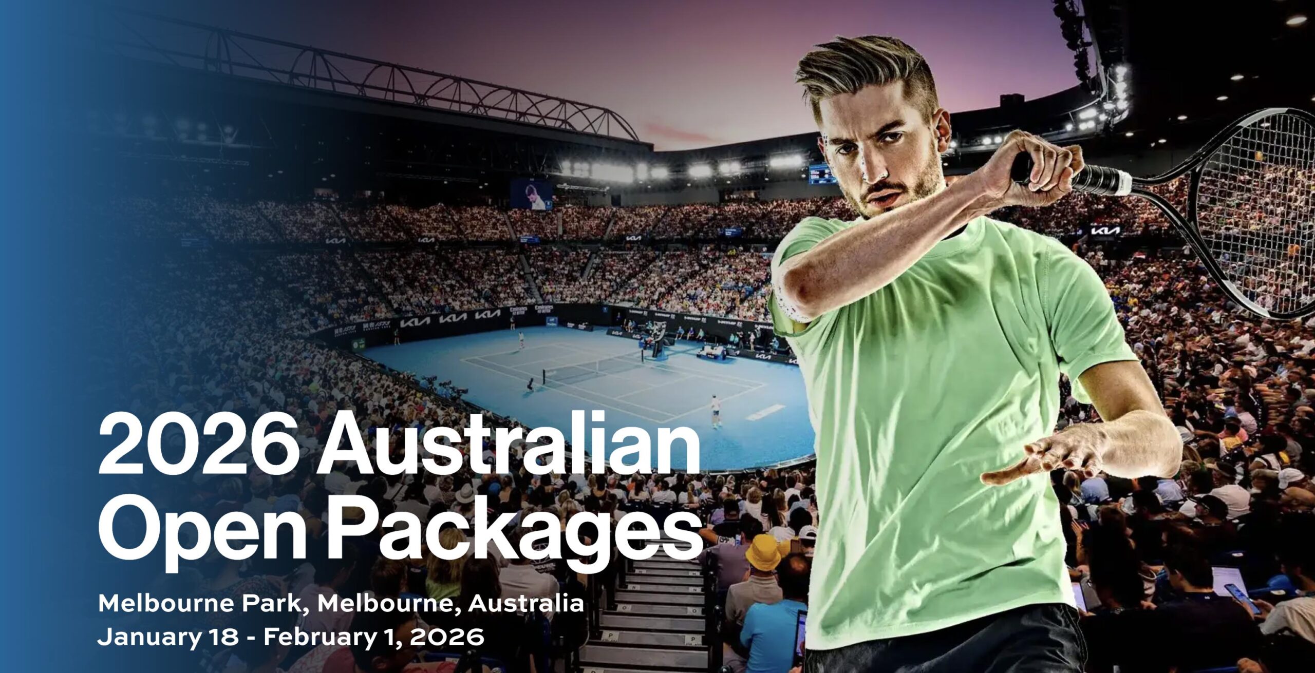• Experience the thrilling 2026 Australian Open exactly the way you’ve always imagined. Our knowledgeable team will design a personalized travel package perfectly tailored to your preferences with first-class hotels (including the Park Hyatt Melbourne) and your choice of tickets for your preferred sessions. You let us know how long you want to spend in Melbourne and which matches you want to see, then we’ll take care of all the details. Complete 2026 Australian Open Packages (2-night, 2-session) are available now from $3,665 per person, based on double occupancy.